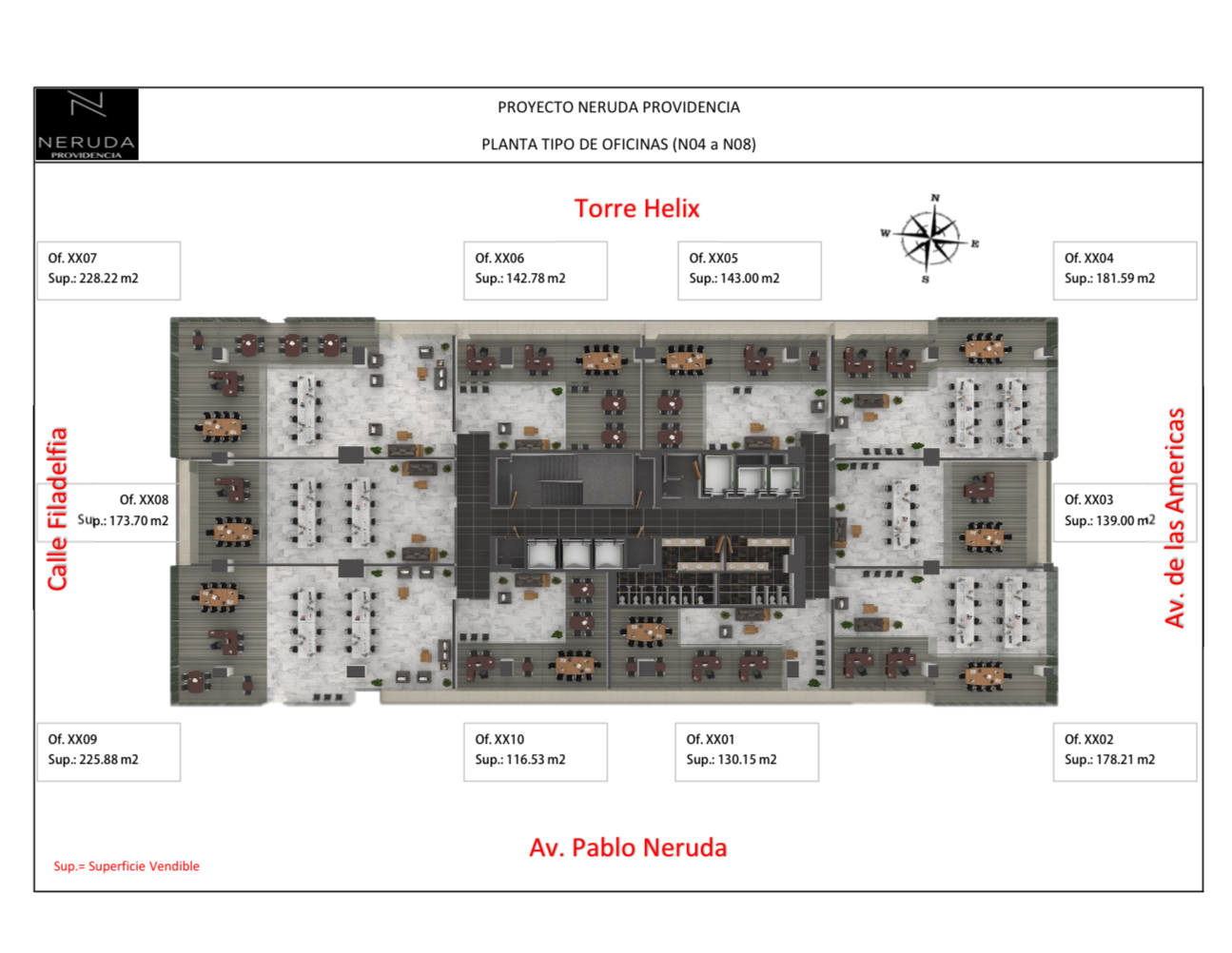 Torre Neruda Providencia. 8 pisos de oficinas con excelentes vistas a la zona financiera, se entregan en obra gris para propia adaptaciĂłnÂ